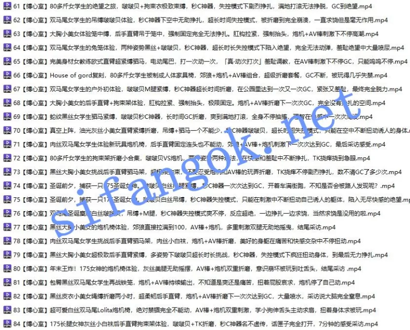 | 本套直接放的某房原版,注意解压密码 ⭐【舞团】现在舞团资源整理了8000多套,其他资源也整理了几万套(具体还没统计),后续搞好了不定期会发一些,喜欢的兄弟可以关注 ⭐【内购】现在每天基本除了从某房内购30-50个最新资源,还自己在做一些合集的整理,后续有机会也会发 ⭐【套图】现在收集了20多万套合集和单套,不定期会挑选发,喜欢的兄弟可以关注 —————————————————————– ❤️喜欢的兄弟可以点赞评论,加加关注,感谢支持❤️ —————————————————————– 【来源方式】:自购 【资源日期】:开始-2026.01.08 【文件大小】:88G 【时间长度】: 总时长66小时 【影片有无声音】:有 缚心室,这个真是比较有名的国产工作室 男主酷爱把女主绑起来然后炮机强高 每次都是半个小时都不停 一共四五个女主吧 长相都还可以 内容 电击 炮机 强高 哭也不停 女主好几部都破防开骂了 然后没办法又求饶让停下来 国产工作室基本都有码,但是他的码只要不是正面怼着下体就不打 有的时候动一下相机 码就错位了(下方有图)本次发布最全合集84部 单部20-30 (前半部分是外站会员下载 后半部分官网自己购)花费 1000+ 下方有目录 开始至的2026年1.8日最新84部 这个系列真的很有看头 推荐! ———————————————————————- ▶️本资源内购自某房⭐1月9日⭐发布的收费资源⭐价值52RMB ———————————————————————- 某房预览图有私密位置遮挡(模糊或者打码),实际内容没有(所有资源均采用bandizip软件压缩)
